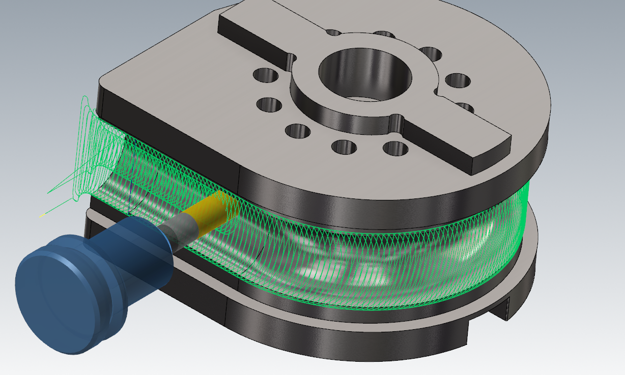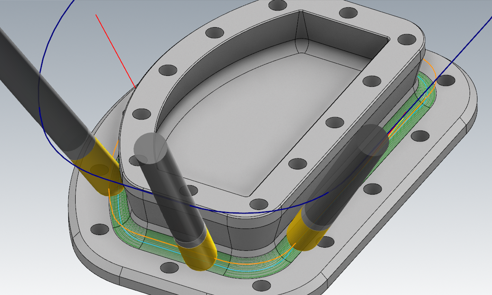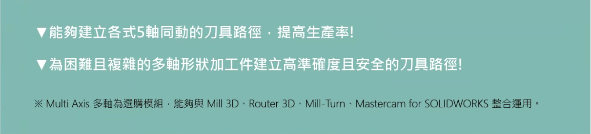 在兩圖素之間 ( 曲面或曲線 ) 建立吻合圖素輪廓的路徑,進而進行高效率的多軸加工。